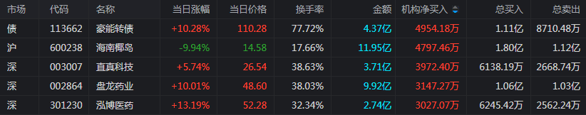 今天机构资金参与度前五名中最高的股票是海南椰岛,公司所属行业饮料制造。公司主营业务为酒类产品的生产和销售,主要产品有“椰岛鹿龟酒”和“椰岛海王酒”;同时公司积极推进椰汁饮料业务、贸易与供应链业务、房地产业务的协同发展。保健酒是公司的核心产业,主导产品椰岛鹿龟酒、椰岛海王酒在全国享有盛誉,品牌价值在行业内名列前茅。