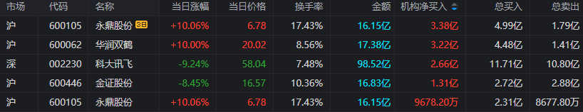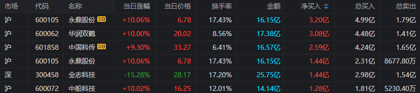 4月21日龙虎榜资金数据分析,龙虎榜资金净买入前五分别是永鼎股份、华润双鹤、中国科传、全志科技、中船科技,资金分别净买入3.20亿元、3.08亿元、2.59亿元、1.44亿元、1.28亿元,龙虎榜资金榜首是通信设备板块个股永鼎股份。
