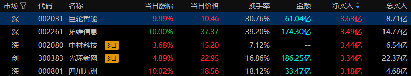1)巨轮智能(002031),今日拔得龙虎榜资金头筹,所属板块:专用设备,资金净额买入3.63亿元,机构买入明显。上榜原因:日涨幅偏离值达7%的证券。股价异动:巨轮智能今日涨停,主要受到行业和公司层面的利好推动。行业方面,人工智能领域的不断创新为相关企业带来机遇。公司方面,巨轮智能在2023年5月获得机器人减速机CR产品认证证书,并在研发适用于人形机器人的减速器产品,这些进展增强了市场对公司未来发展的信心。此外,公司在轮胎模具和智能装备领域的业务也表现出色。在今日的龙虎榜资金中,消闲派大举买入,散户席位净卖出。游资方面,消闲派以其犀利的打板策略对股价形成了强力支撑,其大额买入显示出对巨轮智能的短期看好。然而,部分游资席位的净卖出也对股价造成了一定压力。整体而言,游资的积极参与提升了市场对巨轮智能的关注度。