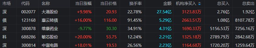 3.机构资金参与前五个股: