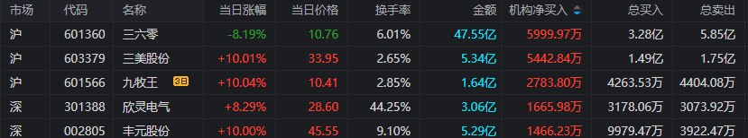 3.机构资金参与前五个股: