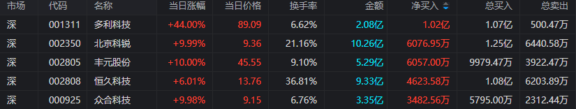 4.龙虎榜风口资金游资参与前五个股: