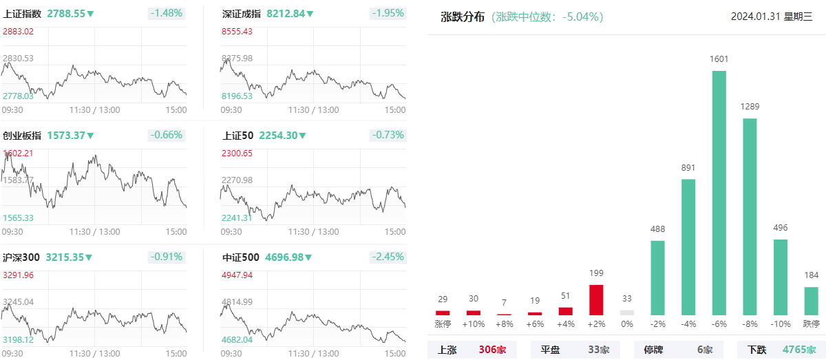 亚商投顾-1月31日龙虎榜复盘:沪指再度失守2800点,两市超百股跌停