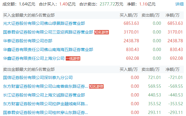 3)金帝股份(603270),净额买入1.16亿元,所属板块:通用设备。上榜原因:日换手率达20%的证券。1、公司主营业务是精密机械零部件的研发、生产和销售。公司主要产品轴承保持架和汽车精密零部件,公司上市日期为2023年9月1日。2、根据公司招股书介绍:公司风电行业保持架产品包括变桨保持架、齿轮箱保持架、主轴保持架和偏航保持架等4种,系风电设备轴承的主要元件,对风电设备轴承的正常运转起到至关重要的作用。3、公司12月8日于互动平台表示,公司已进入蔚来、长城汽车等主流汽车厂商供应体系,成为舍弗勒(Schaeffler)、法雷奥(Valeo)、爱信、博格华纳等全球知名汽车零部件厂商供应商。4、公司12月11日于互动平台表示,大股东所持股份尚处在限售期内,不存在减持的可能。另外,截止到目前,公司未收到过大股东关于减持公司股份的计划。