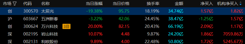 今天机构资金参与度前五名中最高的股票是太辰光,公司所属于通信设备板块。主要炒作逻辑:铜缆高速连接 +CPO + F5G概念;受DeepSeek爆火影响,英伟达春节期间累计下跌逾16%,其产业链相关个股如新易盛、天孚通信、中际旭创、神宇股份、太辰光等今日开盘大跌超10%。这表明市场对英伟达产业链的担忧情绪蔓延至相关个股,导致太辰光股价大幅下挫。尽管机构席位的积极买入显示出对后市的看好,但游资的净卖出仍可能对股价形成压制。投资者在关注市场情绪变化的同时,应结合公司基本面及行业前景,谨慎决策。未来走势或将取决于市场情绪的恢复以及公司基本面的支撑。