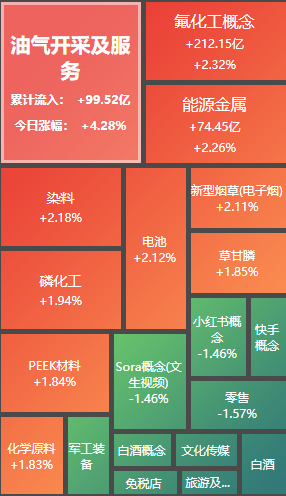热点解析:油气开采及服务板块今日表现强势,消息面上,《2025年国内外油气行业发展报告》近日在北京发布。2025年油气勘探开发投资保持较高水平,油气储产量均创历史新高。