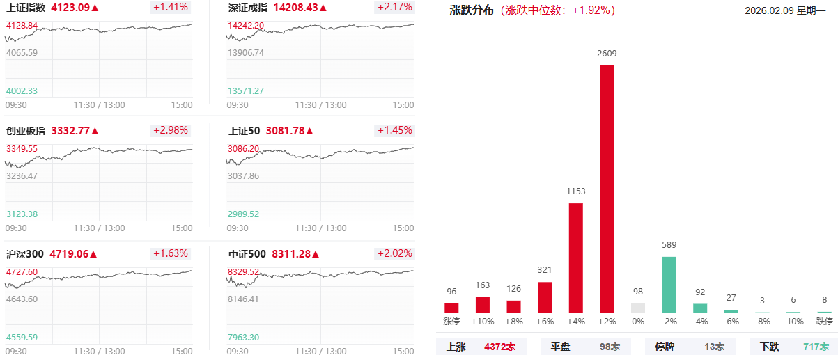 亚商投顾-2月9日龙虎榜复盘:沪指重返4100点 全市场上涨个股超4600只