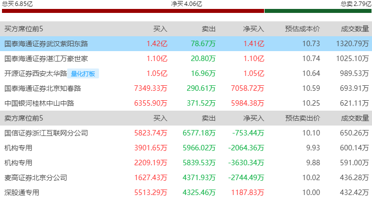 4.龙虎榜风口资金游资参与前五个股