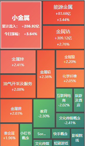 盘面上,周期股方向再度走强,化工、有色金属、玻纤等板块均涨幅居前,而另一方面,昨日领涨的传媒、影视板块则集体重挫。整体而言,在存量博弈的市场环境下,各热点间维持快速轮动格局,把握节奏仍是关键。