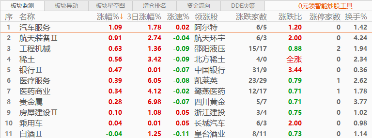 板块方面:多数收跌,汽车服务、航天装备板块涨幅居前,煤炭、风电设备、电池、能源金属、电子化学品、农化制品、光伏设备、化学原料、半导体板块跌幅居前。