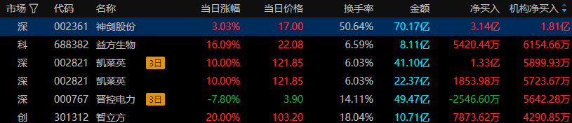 ①神剑股份(002361),今日拔得龙虎榜资金头筹,所属板块:塑料制品,资金净额买入3.14亿元,机构买入明显。上榜原因:日换手率达20%的证券。股价异动:神剑股份今日收涨3.03%,延续近期震荡上行节奏。公司卫星复材与无人机配套概念叠加聚酯树脂龙头地位,军工+新能源双轮驱动逻辑获资金持续博弈,短线资金对低空经济及军工订单预期升温,带动股价脱离平台整理。在今日的龙虎榜资金中,深股通净买2.7亿,机构合计加仓1.8亿。深股通与三家机构同步加仓,体现中线资金对军工新材料赛道的配置意愿;平安证券杭州曙光路历来偏好短线波段,今日5200万元净买入或意在博弈次日冲高。国联民生北京分公司与东亚前海苏州分公司高位兑现超9000万元,显示部分活跃资金选择落袋。当前未见典型游资席位,机构与北向主导下,股价波动或趋温和。
