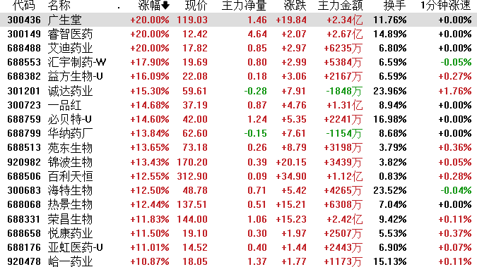 板块上,医药股延续强势,津药药业、广生堂、睿智医药、润都股份、昂利康、海王生物涨停。消息面上,美国癌症研究协会(AACR)年会将于2026年4月17-22日在美国圣地亚哥召开。据报道,今年共有超过100家中国药企亮相AACR,带来近400项研究成果。财通证券表示,大会有望带动创新药情绪回暖。从大会披露的信息来看,中国在多个主流赛道实现了稳定输出,包括ADC、双抗/双抗-ADC、蛋白降解剂以及放射性药物等方向。无论是项目数量密度、技术覆盖广度,还是学术讨论的参与深度,中国企业的存在感都显著提升。