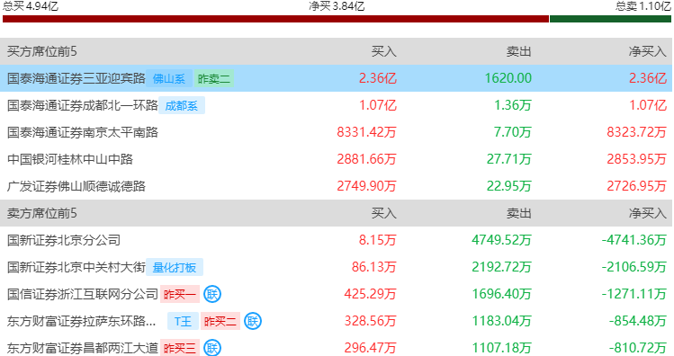 ②新能泰山(000720),资金净额买入3.84亿元,所属板块:电网设备。上榜原因:日振幅值达15%的证券。股价异动:新能泰山今日涨停,个股走出8天6板。公司主营产业园开发、资产运营及电线电缆生产,2025年前三季度电缆销售带动营收同比增三成,叠加央企改革预期,短线资金持续聚焦。在今日的龙虎榜资金中,佛山系净买2.36亿,量化打板兑现2106万。佛山系与成都系均以一日游超短打法著称,前者偏好低位首板,后者倾向震荡趋势中抱团封板,两者合计携超3.4亿元资金入场,短线情绪被快速点燃。量化打板及多家散户席位同步兑现,显示部分资金选择落袋为安,短线博弈加剧。