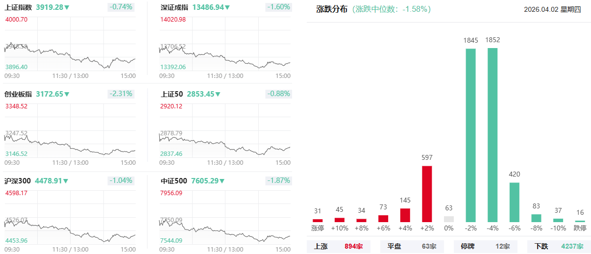 亚商投顾-4月2日龙虎榜复盘:创业板指低开低走 全市场下跌个股超4400只