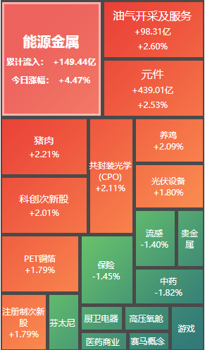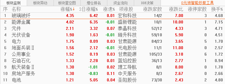 板块方面:涨跌互现,玻璃玻纤、能源金属、元件、光伏设备、电力板块涨幅居前,游戏、医药商业、中药、保险、贵金属板块跌幅居前。